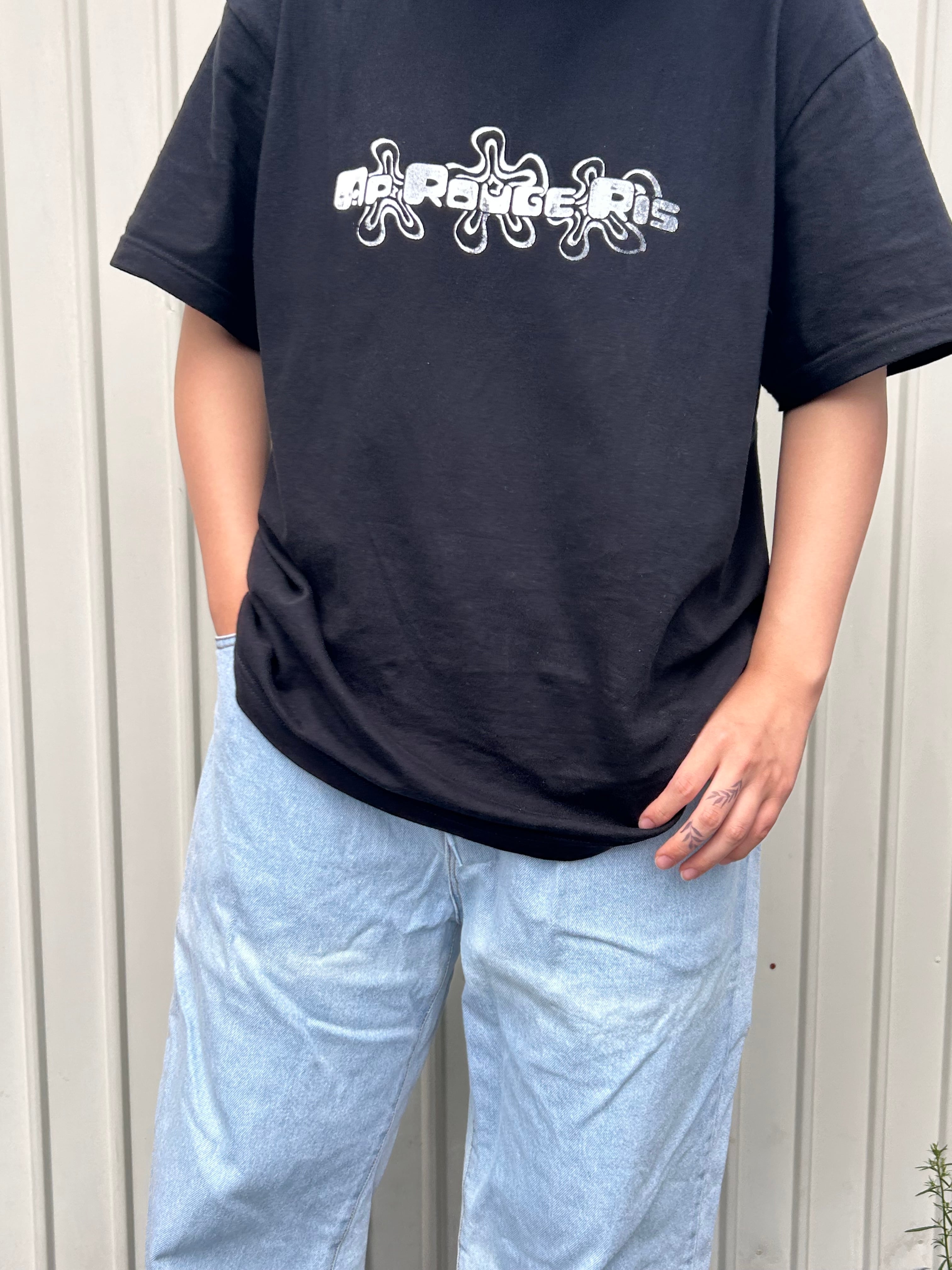 このTシャツは、シルクスクリーンを使って自分の手で一枚ずつプリントしました。